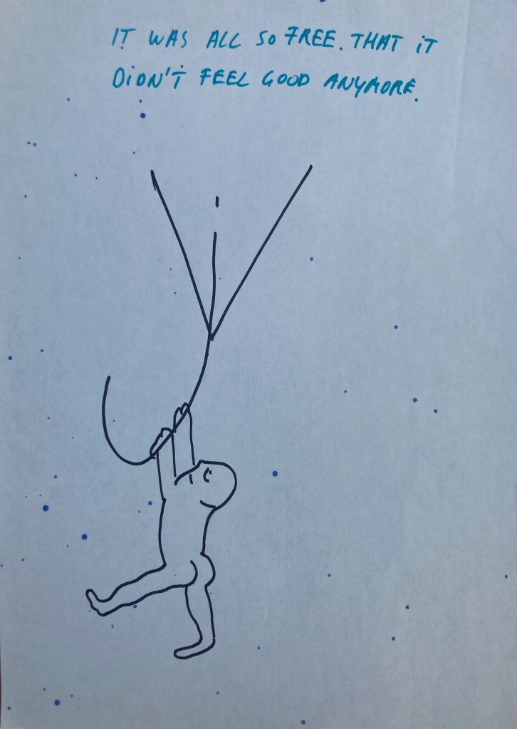It was al so free it didn’t feel good anymore, 29,7cm x 21cm, Ink and acrylics on paper, 2022