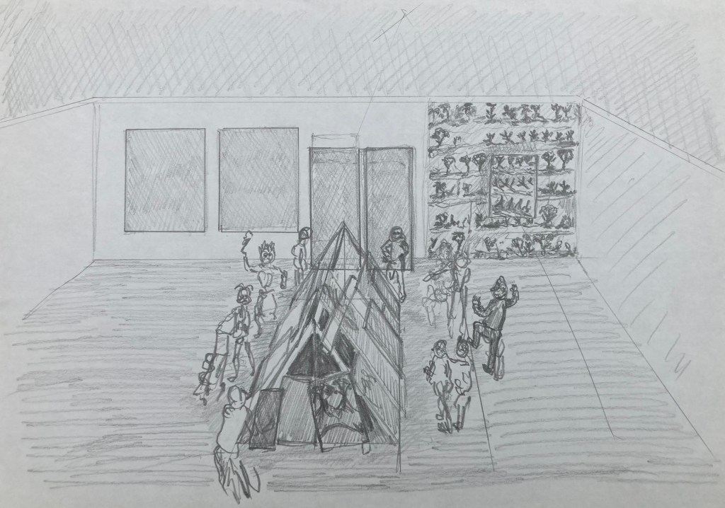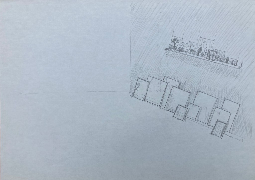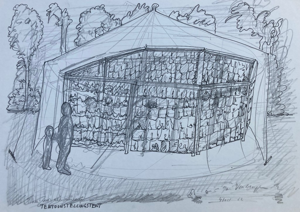 Study for tentoonstellingstent, 21cm x 29,7cm, Pencil and ink on paper, 2022