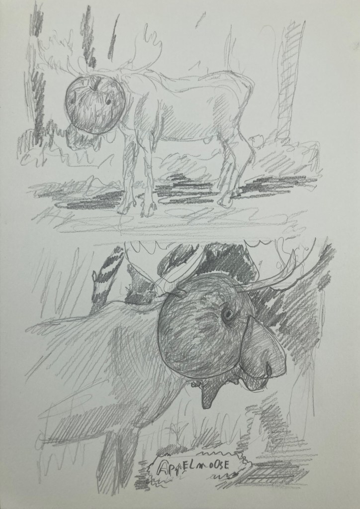 Study for apple moose, 29,7cm x 21cm, Pencil on paper, 2022