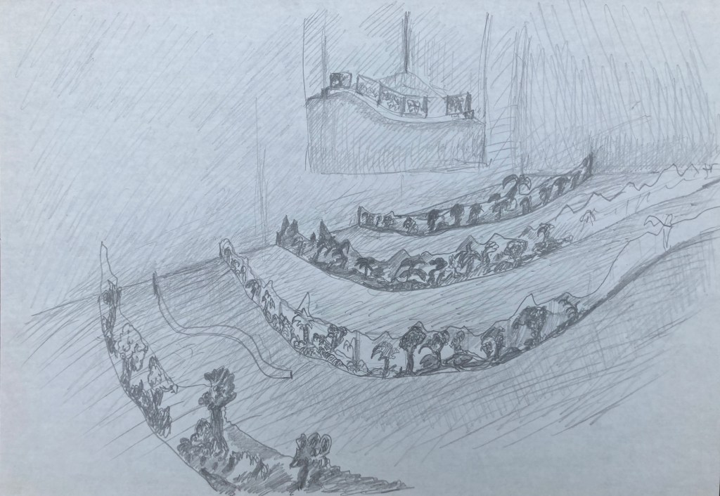Study for ‘de Nachtreis’, 29,7cm x 21cm, Ink on paper, 2022