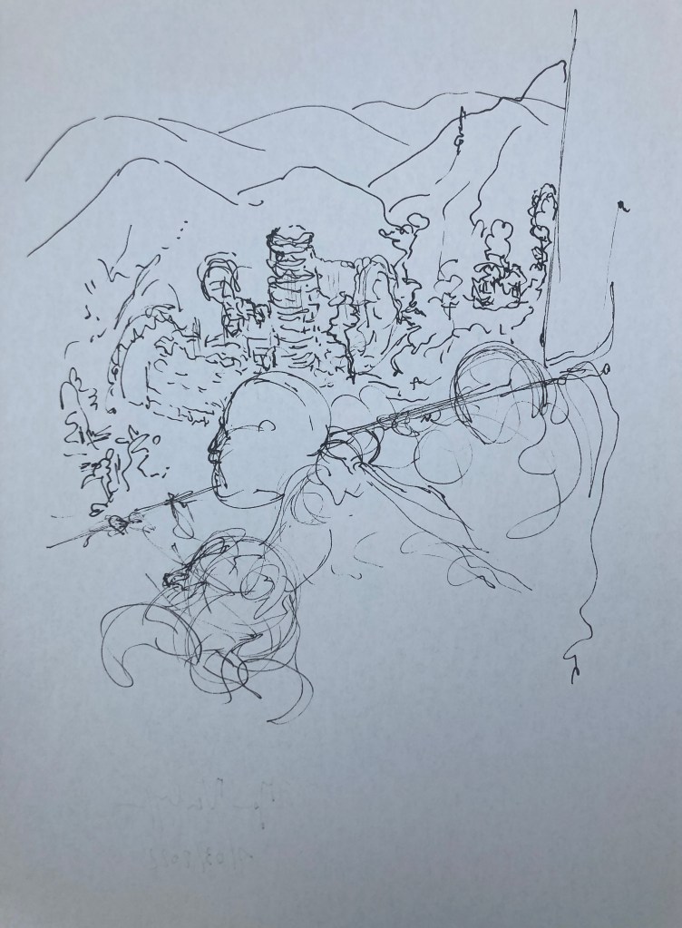 Mayken redt zichzelf in de Lesse, 29,7cm x 21cm, Balpoint and Ink on paper, 2022