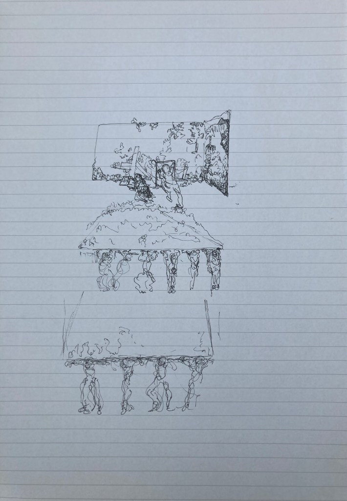 Study for image carrousel, 29,7cm x 21cm, Pencil and Ink on paper, 2022