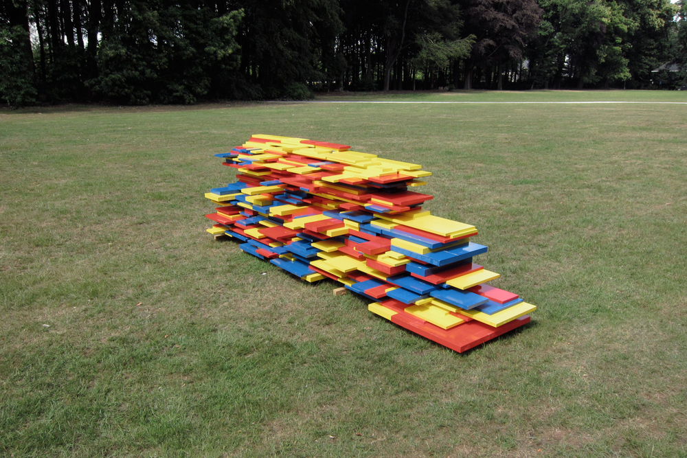Nomad.The Deconstruction of Place proef opstelling in park van Brasschaat.