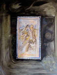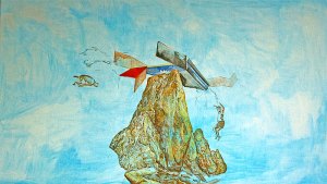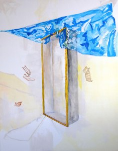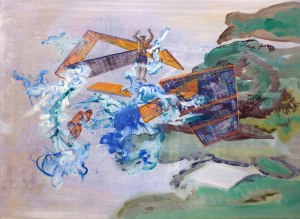 “Parachute”, 50cm x 70cm, waterverf, acrylverf en olieverf op doek, 2012
