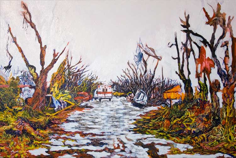 The outlines of the road are redefined by pieces of scrap. Everyday